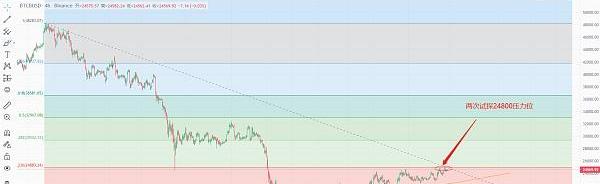 從BTC4小時圖來看,目前還是維穩在上升通道,低點不斷在上移,當前唯一問題就是在24800這里兩次遇阻,目前還沒形成有效的突破。當然我覺得還是要給BTC一些時間,突破這里只是時間問題,ETH已經是先行一步,早早就突破了1822并且站上2000,大餅只需要等待補漲即可。