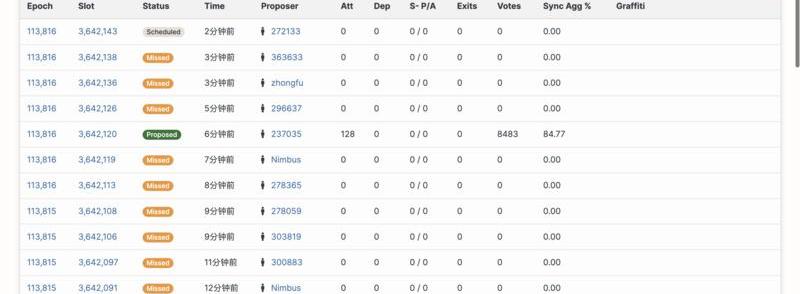 但神魚所發布的推文也一度引發了網友的討論,在Epoch時間113787左右,有大量區塊狀態為“Missed”。