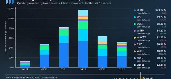 Aave季度收入下降18%,原因是UST暴雷和中心化借貸平臺的倒閉減少了對Aave貸款的需求。