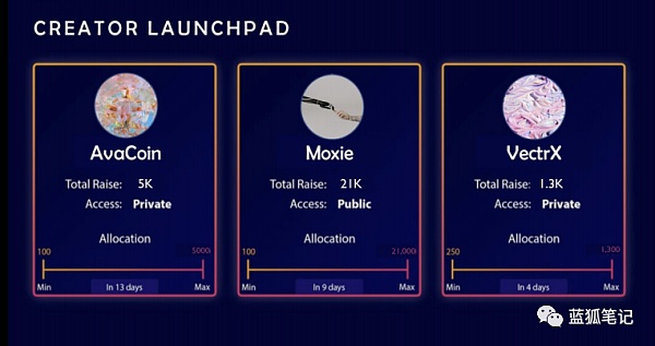 BlindBoxes計劃推出NFT創作者IDO。藝術家們可以通過其Launchpad籌集資金,用于資助未來的NFT藝術創作。對于收藏者來說,可以成為一些藝術家的早期投資者,可以從這些藝術家們的未來NFT作品銷售中獲得收益。這也一種早期的投資關系。