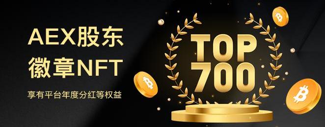 股東徽章NFT共發行600枚,由500枚完整的股東徽章和2000枚代言徽章NFT用戶組成。積分排行榜前300名用戶可以獲得500枚NFT,另100枚通過2000個代言徽章NFT合成,即每20個AEX代言徽章NFT可合成為1個完整的AEX股東徽章NFT。