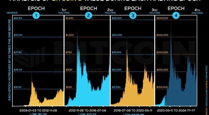 分析人士認為,每次比特幣迎來減半后,通常會出現劇烈的上漲行情。從歷史來看,在2020年5月迎來第三次減半后,比特幣很快就進入了一輪為期數月的牛市,擺脫了自2017年后的熊市,并在去年多次達到6萬美元以上的水平。