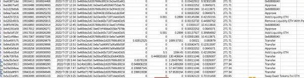 筆者從7.31號下午3點開始撰寫本文,拉取到的二舅幣鏈上交易共計1686條。